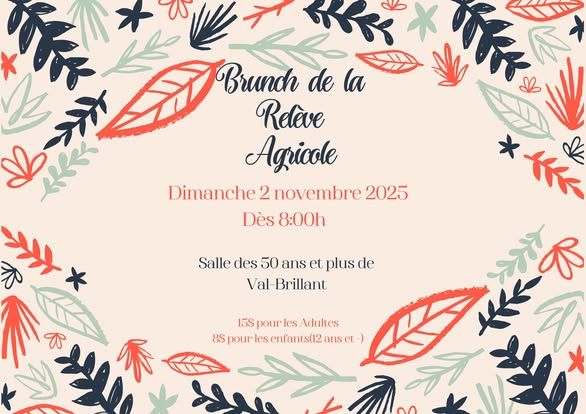 Brunch de la relève agricole dimanche 2 novembre dès 8 h à la salle des 50 ans et plus de Val-Brillant.