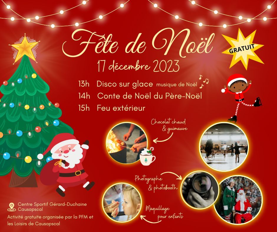 Fête de Noël à Causapscal le 17 décembre à 13h au Centre sportif Gérard-Duchaîne.